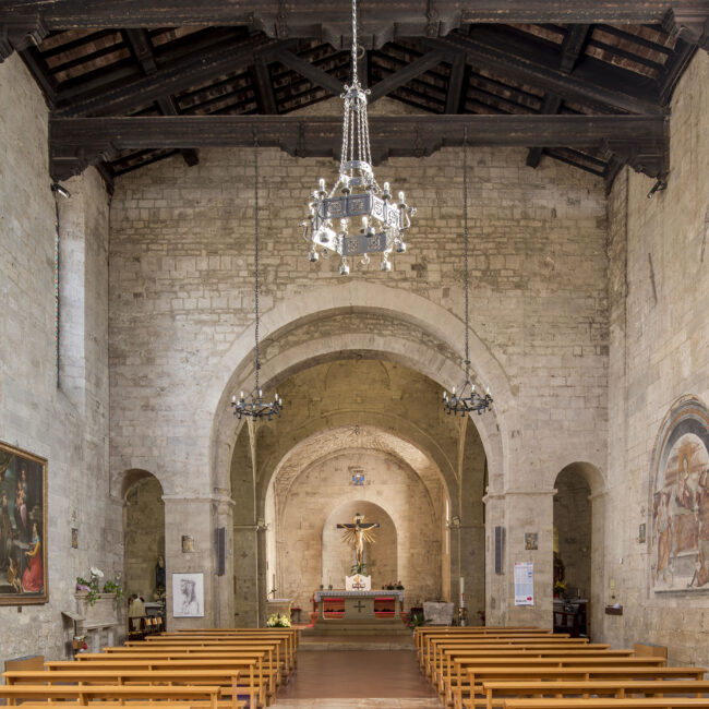 All'interno, alcuni frammenti di affreschi trecenteschi ci svelano l'antica ricchezza della decorazione parietale. Le figure angeliche e i santi che si intravedono nelle rappresentazioni dell'Assunzione evocano un passato luminoso, che fu poi aggiornato con nuove pitture nel Cinquecento. Tra queste, un lacerto raffigurante un Cristo deposto, attribuito a Bartolomeo Neroni, detto il Riccio, spicca con la sua intensità drammatica, offrendoci un assaggio della maestria e della sensibilità artistica di quel tempo.
