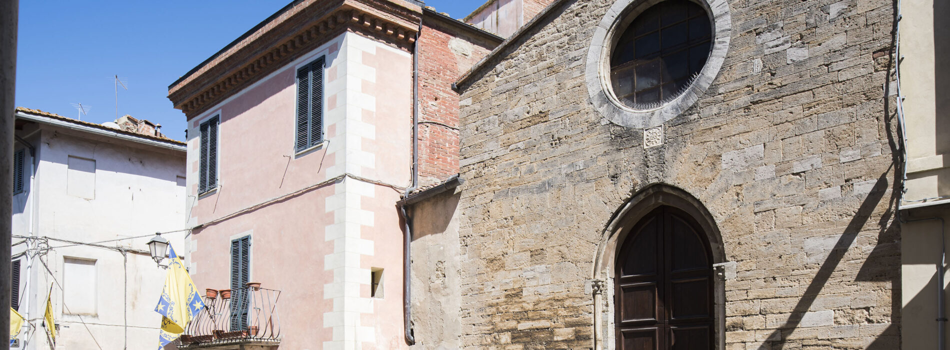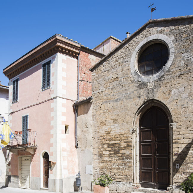 Questa piccola chiesa in pietra, con la sua sobria e discreta eleganza, si innalza tra gli edifici che fiancheggiano il corso principale del borgo di Asciano, come una gemma nascosta tra le vie storiche del paese.