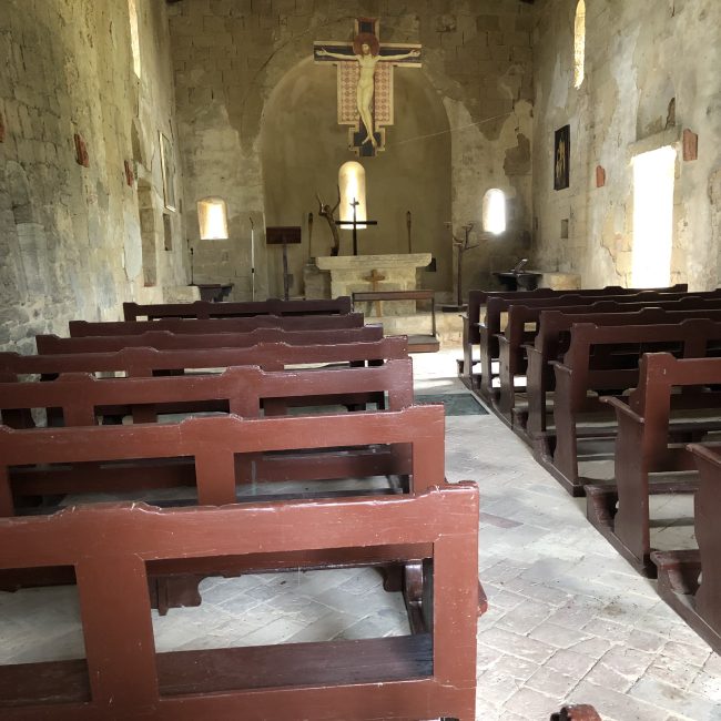 Si aprirà davanti a te il promontorio più elevato del territorio: ben 488 mslm. Dagli ordinati uliveti che incontrerai lungo le sue pendici, passerai poi nel fitto bosco, che cela due importanti monumenti e una inaspettata linea di costa di un mare antichissimo! - L’eremo del Beato Alberto