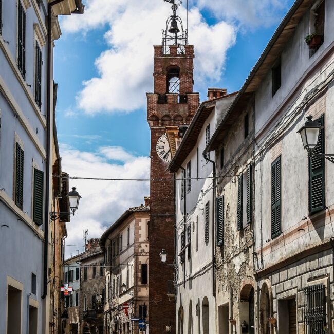 Passeggiando per le strade di Asciano è impossibile non notare la maestosa torre civica che si erge con eleganza al centro del borgo, lungo il corso principale. Questa torre, con la sua presenza imponente, racconta una storia che risale al 1537, come testimoniano le iscrizioni incise nei mattoni antichi che la compongono.
